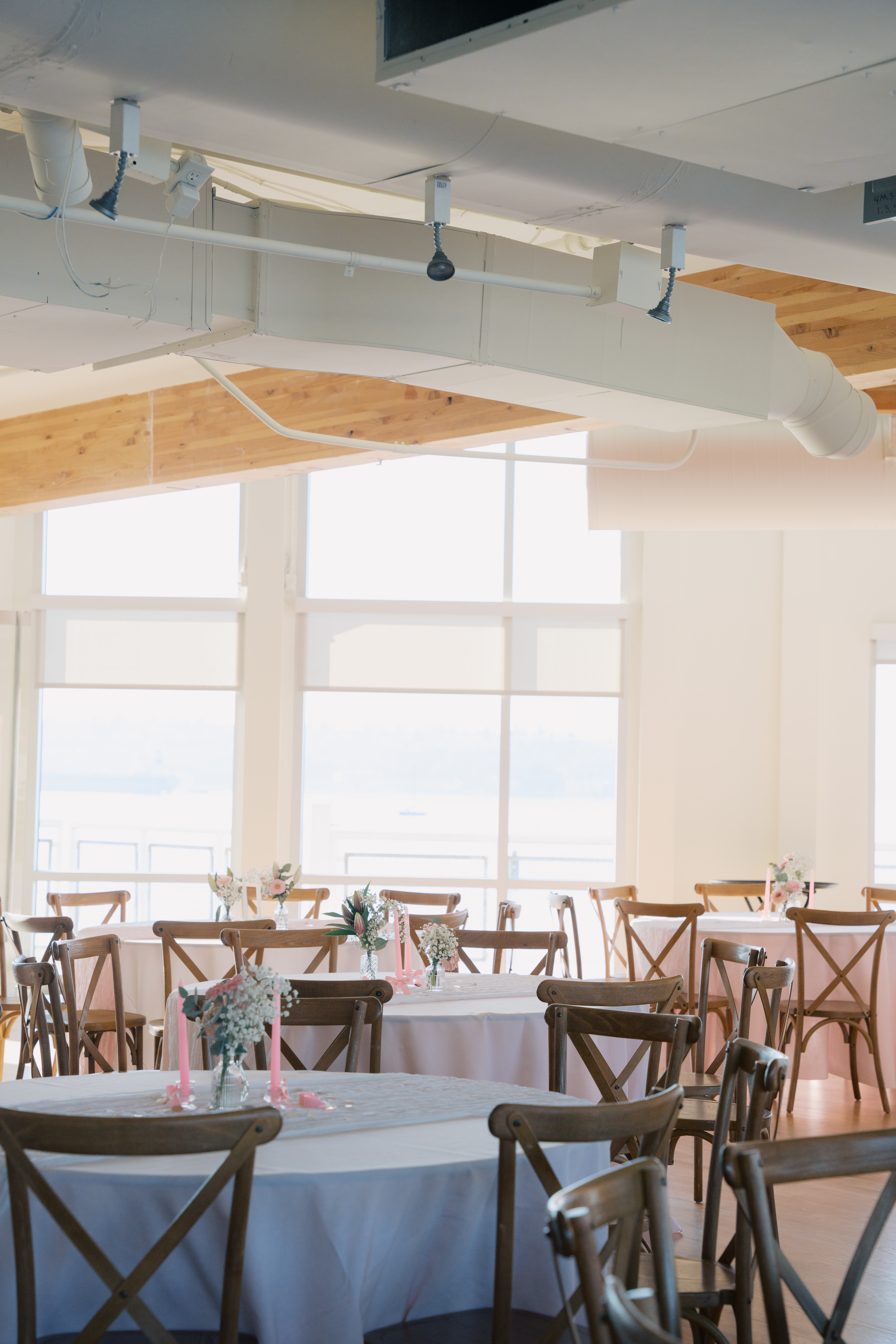Historic waterfront Seattle venue with exposed old growth timber beams and classic modern design
